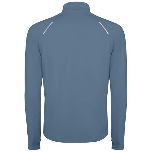 Męska techniczna bluza raglanowa z długim rękawem. Kołnierz zapinany do połowy na zamek błyskawiczny z odblaskowymi detalami. Wzmocnione osłony szwów. Mankiety z otworami na kciuki. Odblaskowe detale na plecach. Tył nieco dłuższy niż przód. Ciepły, szczotkowany materiał wewnętrzny.