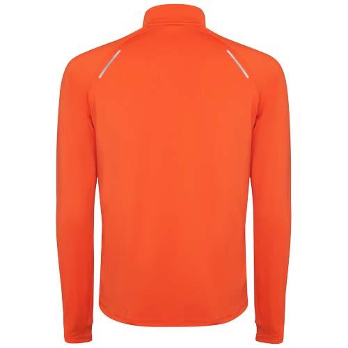 Męska techniczna bluza raglanowa z długim rękawem. Kołnierz zapinany do połowy na zamek błyskawiczny z odblaskowymi detalami. Wzmocnione osłony szwów. Mankiety z otworami na kciuki. Odblaskowe detale na plecach. Tył nieco dłuższy niż przód. Ciepły, szczotkowany materiał wewnętrzny.
