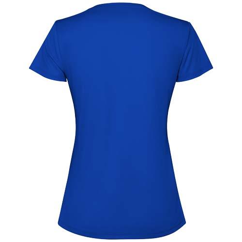 Dopasowana, techniczna koszulka z krótkim rękawem dla kobiet. Kołnierz z pasującymi kolorystycznie szwami. Tył nieco dłuższy niż przód. Szwy boczne przesunięte do przodu.