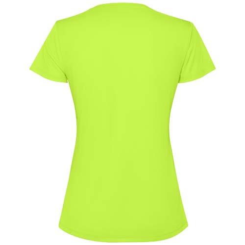 Dopasowana, techniczna koszulka z krótkim rękawem dla kobiet. Kołnierz z pasującymi kolorystycznie szwami. Tył nieco dłuższy niż przód. Szwy boczne przesunięte do przodu.