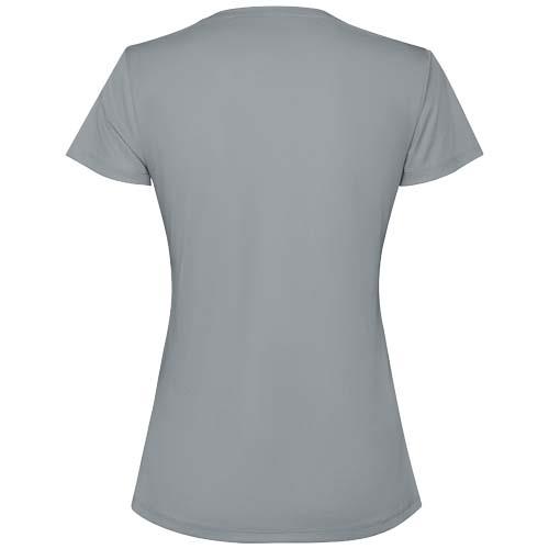 Dopasowana, techniczna koszulka z krótkim rękawem dla kobiet. Kołnierz z pasującymi kolorystycznie szwami. Tył nieco dłuższy niż przód. Szwy boczne przesunięte do przodu.