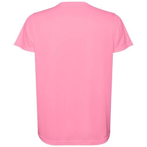 Męska koszulka techniczna z krótkim rękawem. Kołnierz z pasującymi kolorystycznie szwami. Tył nieco dłuższy niż przód. Szwy boczne przesunięte do przodu.