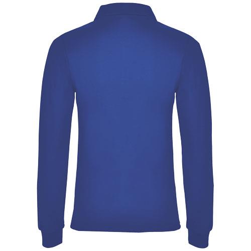 Estrella koszulka damska polo z długim rękawemKoszulka polo z długim rękawem, prążkowanym kołnierzykiem i mankietami, zapięciem na 3 guziki i prążkowanymi mankietami 1×1 z elastanu. Wzmocnione kryte szwy w kołnierzyku. Dopasowany krój. Usuwalna metka. Materiał: Splot Piqué100% Bawełna, 220 g/m2 Kolor: Błękit królewski
