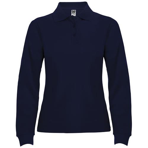 Estrella koszulka damska polo z długim rękawemKoszulka polo z długim rękawem, prążkowanym kołnierzykiem i mankietami, zapięciem na 3 guziki i prążkowanymi mankietami 1×1 z elastanu. Wzmocnione kryte szwy w kołnierzyku. Dopasowany krój. Usuwalna metka. Materiał: Splot Piqué100% Bawełna, 220 g/m2 Kolor: Navy Blue