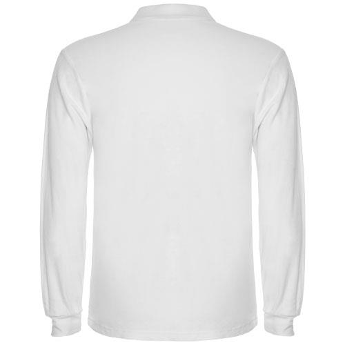 Koszulka polo z długim rękawem, prążkowanym kołnierzykiem i mankietami, zapięciem na 3 guziki i prążkowanymi mankietami 1×1 z elastanu. Wzmocnione kryte szwy w kołnierzyku. Opcjonalna kieszeń. Usuwalna metka.