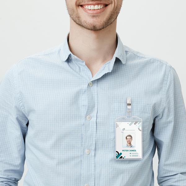 Etui na identyfikator, z klipsem. Rozmiar: 7,5 x 12 cm S1 (sitodruk): 6 x 8 Kolor: przeźroczysty