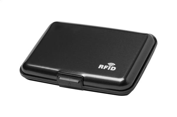 Aluminiowe etui na karty z zabezpieczeniem RFID i miejscem na 6 kart. Description: Aluminiowe etui na karty z zabezpieczeniem RFID i miejscem na 6 kart. Primary Color: czarny Material 1: Aluminium Rozmiar: 110×75×20 mm