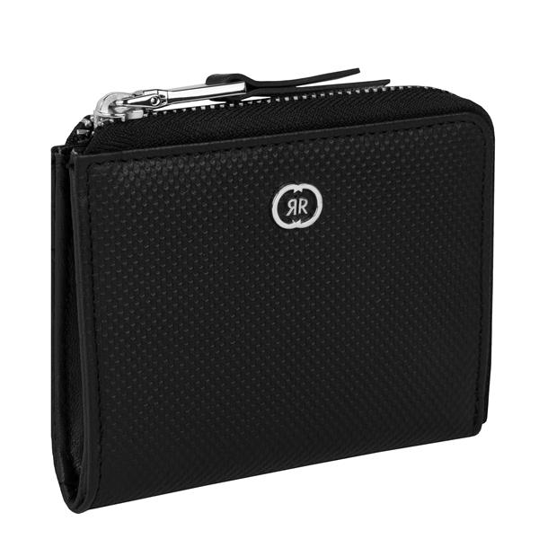 Portfel na karty i drobne Regent zapinany na zamek błyskawiczny jest kompaktowy i elegencki, wykonany z prawdziwej skóry, a faktura jego powierzchni oraz pięknie wyeksponowane logo marki przyciąga uwagę. Rozmiar: 80 x 105 mm Kolor: Czarny