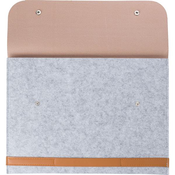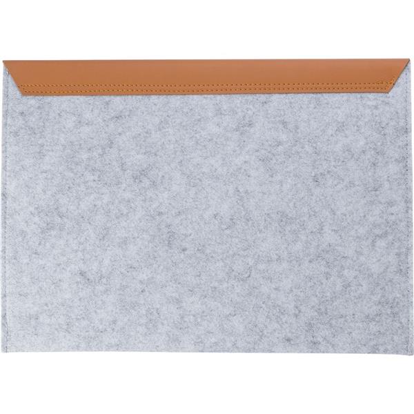 Pokrowiec na laptopa 14″, wykonany z filcu RPET, przegroda główna zamykana na 2 napy