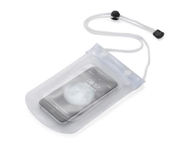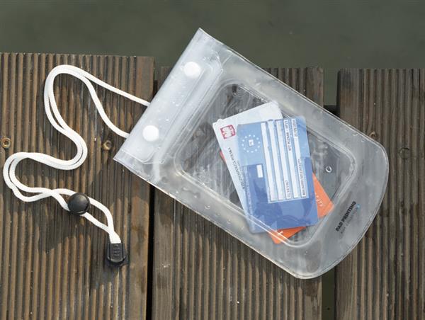 Etui wodoodporne FALLA służy do bezpiecznego przechowywania rzeczy zabezpieczając je przed zamoczeniem. Posiada przezroczyste okienko umożliwiające korzystanie z telefonu z ekranem dotykowym, a także sznurek umożliwiający zawieszenie etui na szyi.