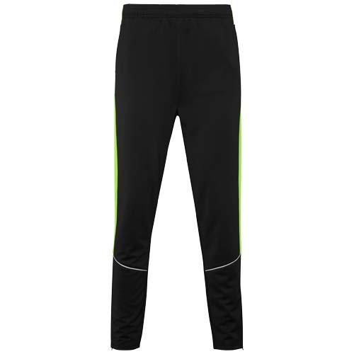 Dres z lekkiego i elastycznego materiału. Kurtka w kontrastowym kolorze z przeszyciami na klatce piersiowej. Wysoki kołnierz z kontrastowymi szwami. Zamek błyskawiczny po środku z przodu. Boczne kieszenie. Mankiety i talia wykończone ściągaczem 2×2. Spodnie z gumką w pasie i sznurkiem. Kontrastująca część z boku nogawki wykończona lamówką. Zamek błyskawiczny na dole nogawek.