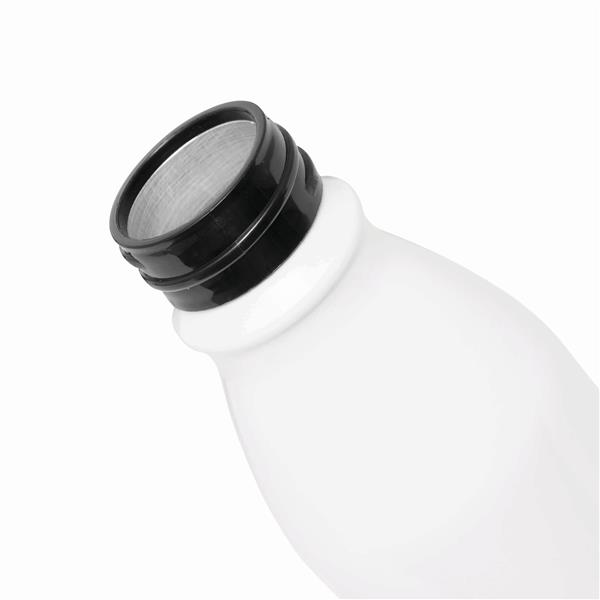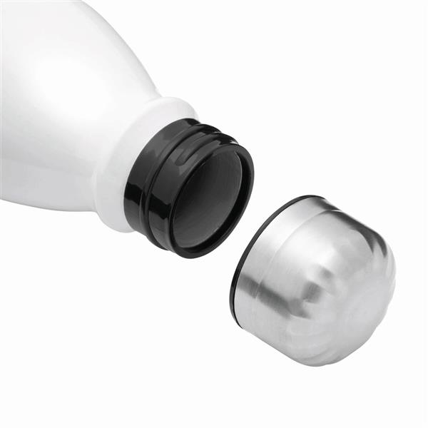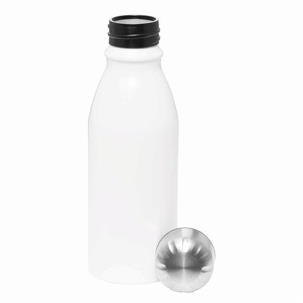 Aluminiowa butelka do picia FANCY, ze srebrną, bezpieczną zakrętką, pojemność ok. 500 ml. Materiał: Aluminium/Stal nierdzewna/Silikon Kolor: biały Tagi: Butelki do napojów,artykuły sportowe,fitness,artykuły rekreacyjne,akcesoria podróżne