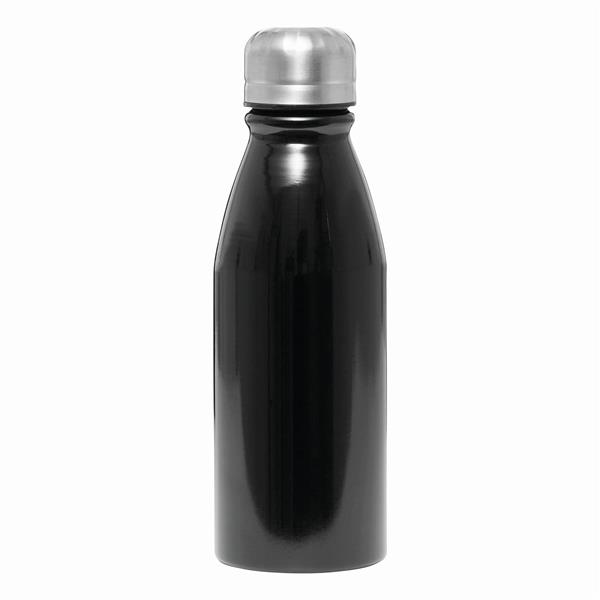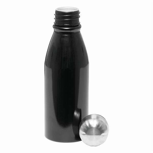 Aluminiowa butelka do picia FANCY, ze srebrną, bezpieczną zakrętką, pojemność ok. 500 ml. Materiał: Aluminium/Stal nierdzewna/Silikon Kolor: czarny Tagi: Butelki do napojów,artykuły sportowe,fitness,artykuły rekreacyjne,akcesoria podróżne