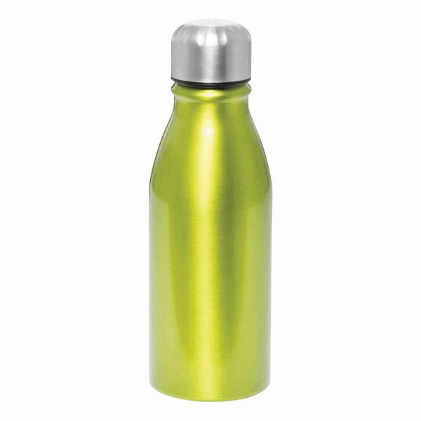Aluminiowa butelka do picia FANCY, ze srebrną, bezpieczną zakrętką, pojemność ok. 500 ml. Materiał: Aluminium/Stal nierdzewna/Silikon Kolor: zielony Tagi: Butelki do napojów,artykuły sportowe,fitness,artykuły rekreacyjne,akcesoria podróżne