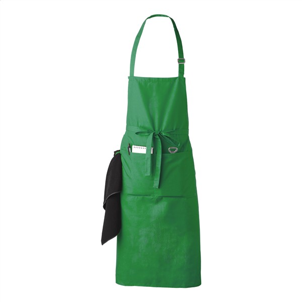 Kolorowy fartuch z kieszenią z przodu. Materiał: 80% poliester / 20% bawełna.