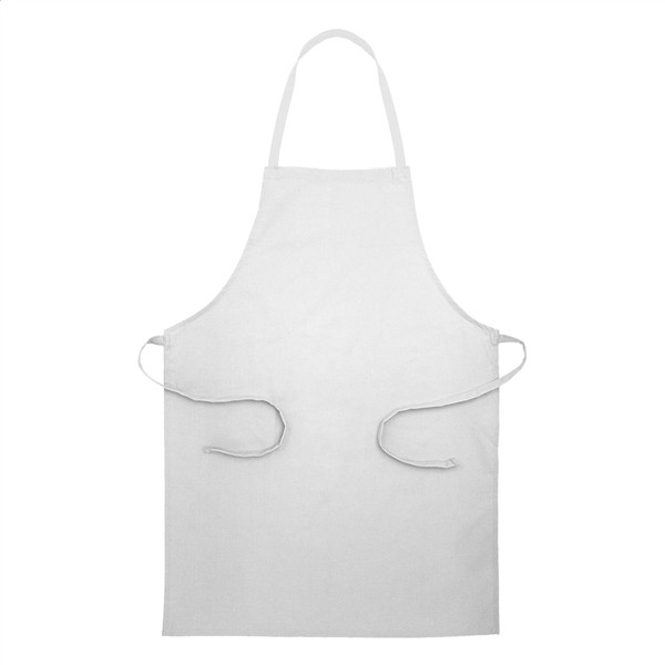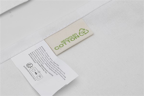 Fartuch kuchenny wykonany w 70% z bawełny pochodzącej z recyklingu i w 30% z poliestru RPET, gramatura 180 g/m2.