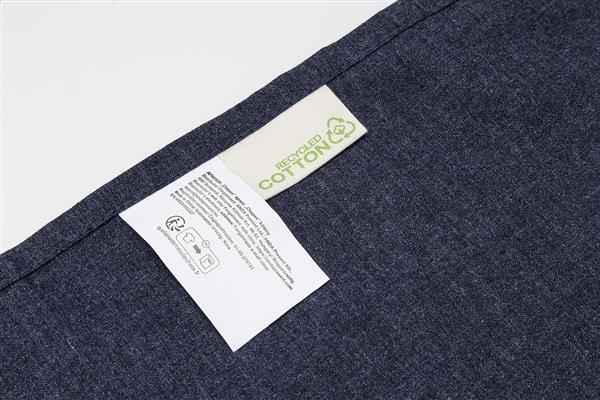 Fartuch kuchenny wykonany w 70% z bawełny pochodzącej z recyklingu i w 30% z poliestru RPET, gramatura 180 g/m2.
