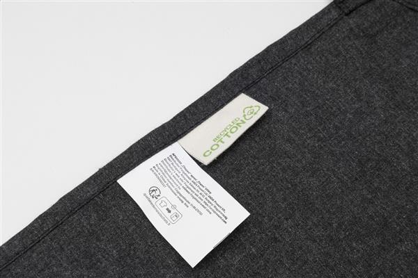 Fartuch kuchenny wykonany w 70% z bawełny pochodzącej z recyklingu i w 30% z poliestru RPET, gramatura 180 g/m2.