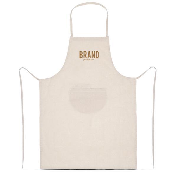 Recycled cotton apron 140g Rozmiar: 66 x 90 cm S2 (sitodruk): 20 x 15 cm Kolor: Natural