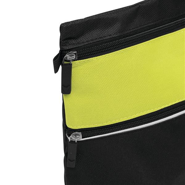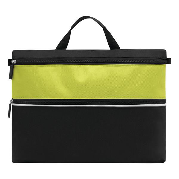 Torba na dokumenty FILE z kieszenią główną oraz dodatkową na przodzie zapinanymi na zamek oraz mocnym uchwytem do noszenia. Materiał: 600D Poliester Kolor: czarny, jasnozielony Tagi: Teczki/etui na dokumenty,teczki do pisania,akcesoria biurowe,torby,teczki/etui na laptopy,torby na ramię,teczki,teczki/teczki na notebooki,teczki