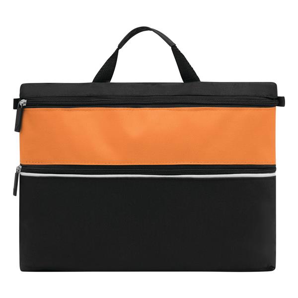 Torba na dokumenty FILE z kieszenią główną oraz dodatkową na przodzie zapinanymi na zamek oraz mocnym uchwytem do noszenia. Materiał: 600D Poliester Kolor: czarny, pomarańczowy Tagi: Teczki/etui na dokumenty,teczki do pisania,akcesoria biurowe,torby,teczki/etui na laptopy,torby na ramię,teczki,teczki/teczki na notebooki,teczki