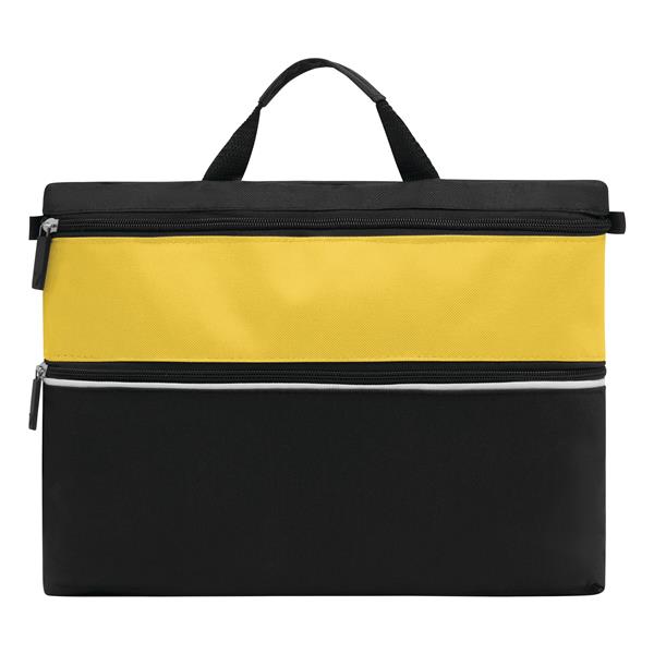 Torba na dokumenty FILE z kieszenią główną oraz dodatkową na przodzie zapinanymi na zamek oraz mocnym uchwytem do noszenia. Materiał: 600D Poliester Kolor: czarny, żółty Tagi: Teczki/etui na dokumenty,teczki do pisania,akcesoria biurowe,torby,teczki/etui na laptopy,torby na ramię,teczki,teczki/teczki na notebooki,teczki