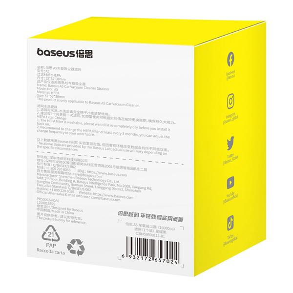 Zapewnij swojemu odkurzaczowi Baseus A5 maksymalną wydajność dzięki kompatybilnemu filtrowi. Filtr Baseus A5 został specjalnie zaprojektowany, aby idealnie pasować do Twojego urządzenia, co gwarantuje jego efektywną pracę.