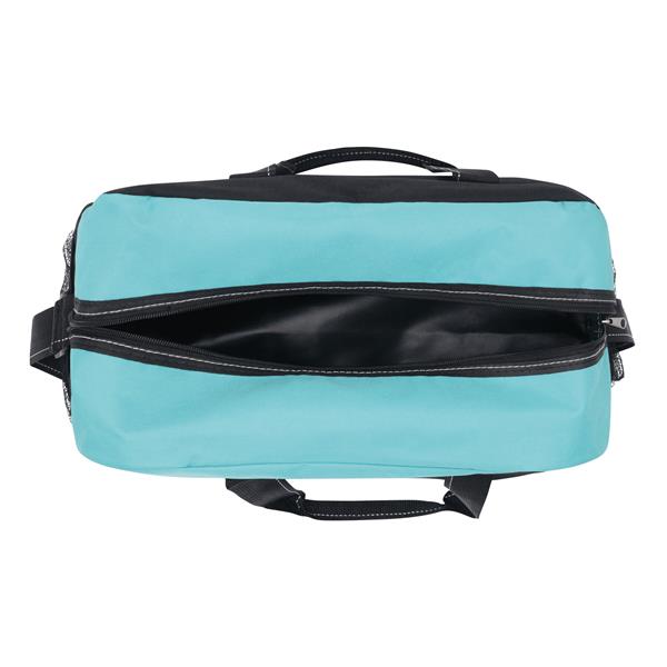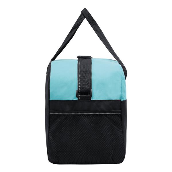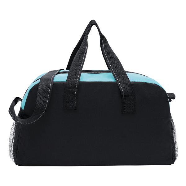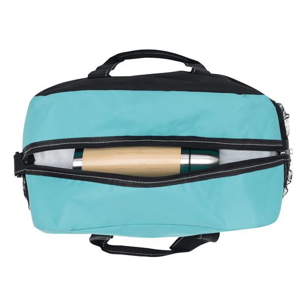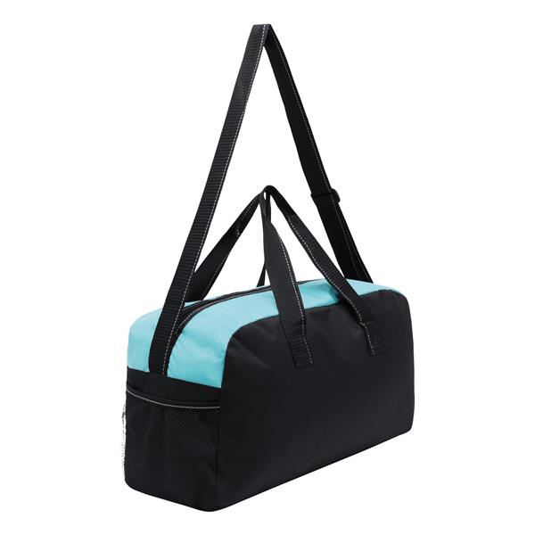 Sportowa torba FITNESS z przestronną komorą główną na zamek błyskawiczny, po bokach 2 siatkowe kieszenie, 2 uchwyty do przenoszenia, regulowany pasek na ramię. Materiał: 300D Poliester Kolor: czarny, turkusowy Tagi: Torby sportowe,torby fitness,bagaż,artykuły sportowe