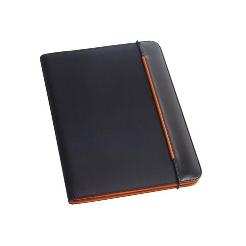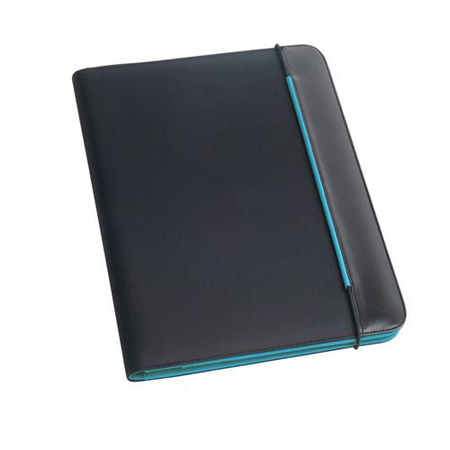 Teczka A4 wykonana z PU i 800D, z wnętrzem z mikrofibry. Teczka posiada gumkę do zamykania, blok z 40 liniowanymi stronami, 3 kieszenie i uchwyt na długopis (długopis nie jest dołączony). 245 x 315 x 15 mm