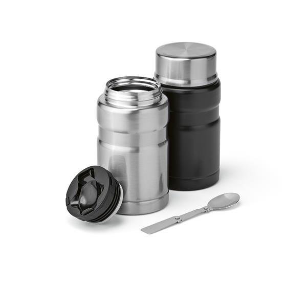 Nasz pojemnik na żywność o pojemności 810 ml (740 ml netto) jest wykonany ze stali nierdzewnej pochodzącej z recyklingu i ma podwójne ścianki zapewniające izolację. Składana łyżka jest sprytnie ukryta w pokrywce. To twój zrównoważony przyjaciel, który utrzymuje ciepłe posiłki, gdziekolwiek jesteś.