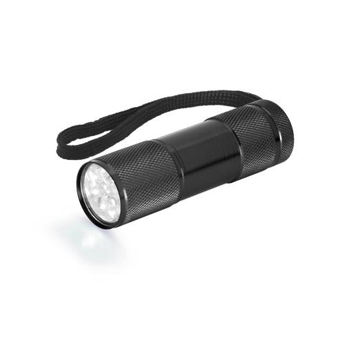 Aluminiowa latarka z 9 diodami LED (35 lumenów) i uchwytem. Zawiera 3 baterie AAA. Dostarczany w pudełku. o26 x 90 mm | Pudełko: 38 x 38 x 100 mm