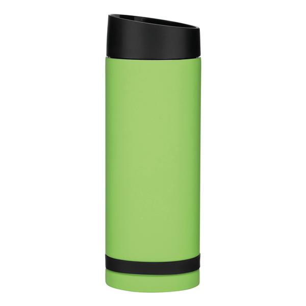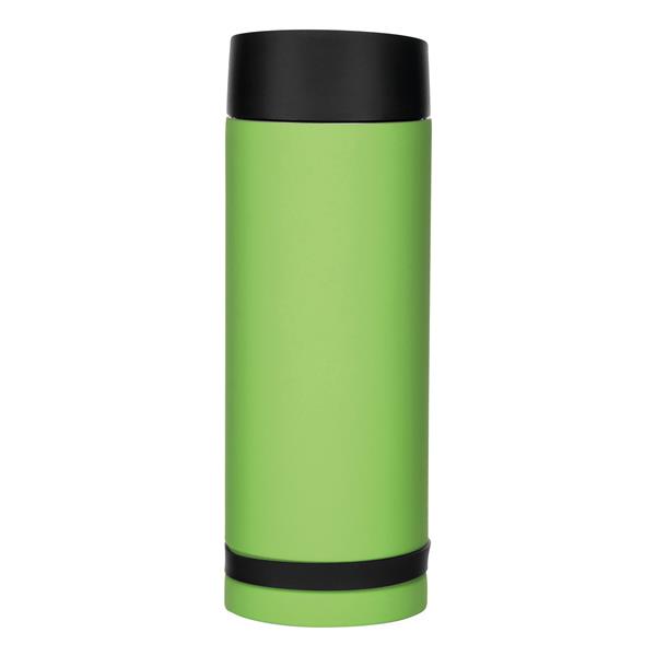 Kubek termiczny FLAVOURED o podwójnych ściankach, wewnątrz i na zewnątrz wykonany ze stali nierdzewnej. Plastikowe wieczko z bezpieczną zakrętką, przyciskiem OPEN/CLOSE i otworem do picia, pojemność ok. 380 ml.