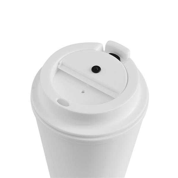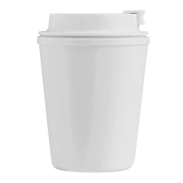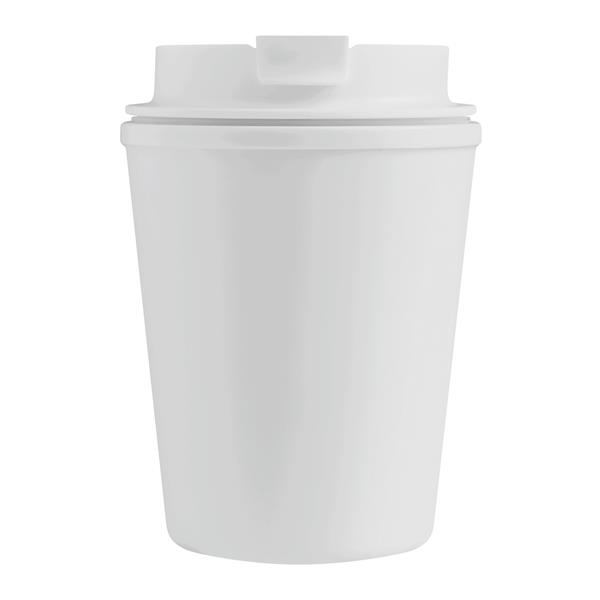 Kubek termiczny FLEXICUP z podwójną izolacją. Wewnątrz i na zewnątrz wykonany jest z tworzywa sztucznego. Posiada bezpieczną pokrywkę z silikonową uszczelką i zintegrowany, wygodny otwór do picia. O pojemności ok. 350 ml. Utrzymuje ciepło przez ok. 2 godziny, a zimno nawet do 4.