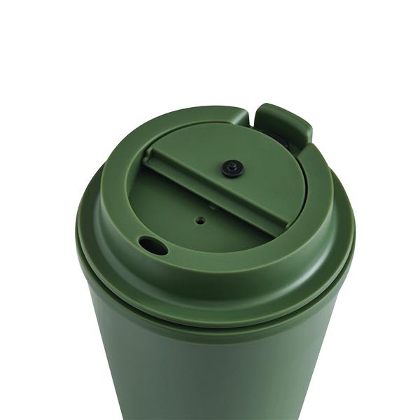 Kubek termiczny FLEXICUP z podwójną izolacją. Wewnątrz i na zewnątrz wykonany jest z tworzywa sztucznego. Posiada bezpieczną pokrywkę z silikonową uszczelką i zintegrowany, wygodny otwór do picia. O pojemności ok. 350 ml. Utrzymuje ciepło przez ok. 2 godziny, a zimno nawet do 4.