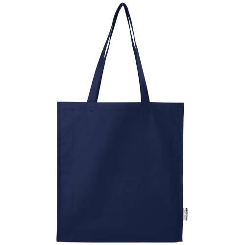 Wykonana w 100% z bawełny z recyklingu o gramaturze 270 g/m2 z certyfikatem GRS torba na zakupy Florida z dnem to bardziej odpowiedzialny i trwały wybór na co dzień. Dzięki pojemności 14 litrów i 30-centymetrowym uchwytom idealnie nadaje się do łatwego przenoszenia zakupów spożywczych, książek lub codziennych drobiazgów.