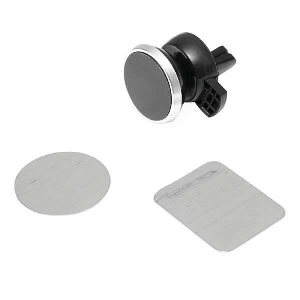 Magnetyczny uchwyt do telefonu FLUX odpowiedni do smartfonów i telefonów komórkowych. Mocowany do nawiewu w samochodzie (przystosowany do różnych rozmiarów). Okrągła płytka samoprzylepna mocowana do telefonu lub obudowy. Telefon może być obracany o 360° dzięki magnetycznemu mocowaniu.