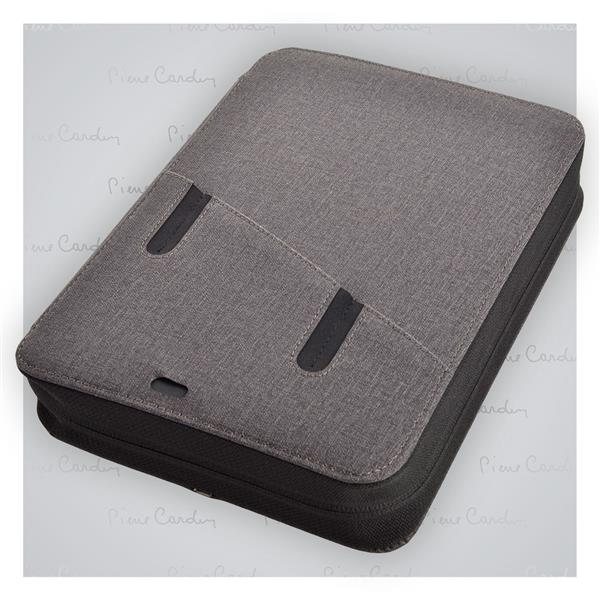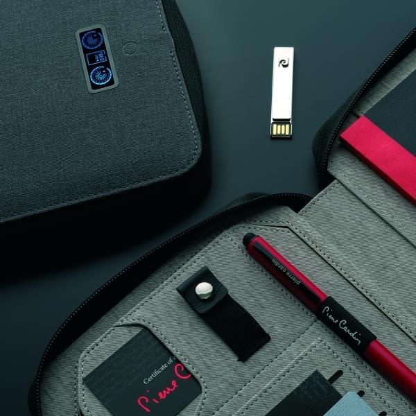 Luksusowy folder wykonany z PU z kieszenią zamykaną na zamek oraz notesem w linie (50 stron). Folder ze zintegrowanym power bankiem 4000 mAh/15.2W (Input: DC5V-2A, Output DC5V-2A). Posiada kieszeń na tablet (rozmiar 8). Wyposażony w kieszonki na notatki i wizytówki oraz kabel USB (micro USB, type-C and Lightening). Zapakowany w eleganckie pudełko prezentowe z certyfikatem autentyczności Pierre Cardin.