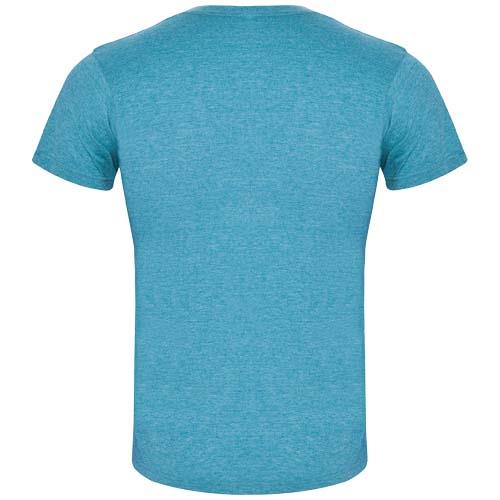 T-shirt z krótkim rękawem i efektem melanżu. Okrągły dekolt wykończony ściągaczem 1×1 z wewnętrznymi wzmocnionymi szwami. Materiał rurkowy. Usuwalna etykieta.