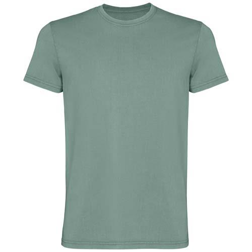 Męska koszulka z krótkim rękawem. Wykończenie uzyskane dzięki poddaniu działaniu wybielacza w celu uzyskania smug lub odbarwień. Okrągły dekolt wykończony prążkowanym ściągaczem 1×1. Ścieg kryty ton w ton z wykończeniem na wysoki połysk.