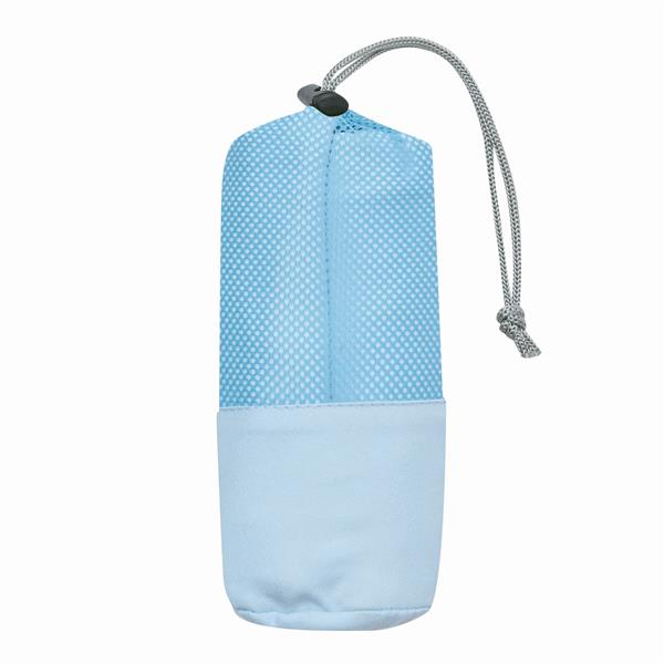 Ręcznik z mikrofibry FRESHNESS bardzo chłonny i szybkoschnący, o miękkiej teksturze. W dopasowanej kolorystycznie siateczkowej torbie ze sznurkiem do zaciągania i plastikowym stoperem.