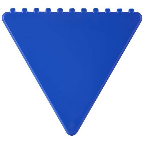 Triangular-shaped windshield scraper with a large decoration area. Each of the 3 sides can be used to remove ice from the windshield. Made in the UK from recycled plastic. The ice scraper has a speckled finish due to the nature of the recycled material.