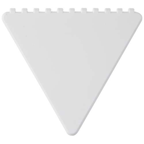 Triangular-shaped windshield scraper with a large decoration area. Each of the 3 sides can be used to remove ice from the windshield. Made in the UK from recycled plastic. The ice scraper has a speckled finish due to the nature of the recycled material.