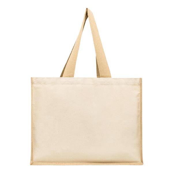 Torba na zakupy FUTURE wykonana z juty i płótna. Z długimi bawełnianymi uchwytami i kolorowym wykończeniem.
