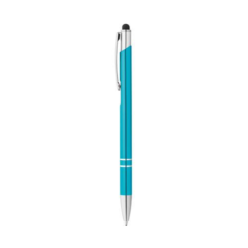 Aluminiowy długopis z końcówką dotykową i klipem. Dostępny w szerokiej gamie kolorów. Niebieski tusz o8 x 142 mm