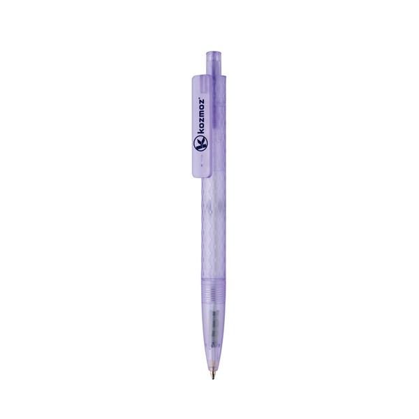 Długopis z geometrycznym wzorem na trzonie, wykonany z PC z recyklingu, niebieski wkład, długość pisania ok. 1200 m, całkowita zawartość materiałów z recyklingu obliczona w oparciu o wagę całkowitą przedmiotu: 84%