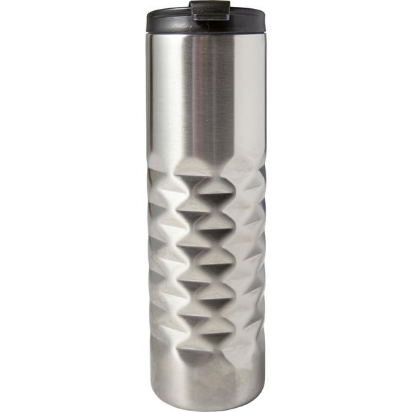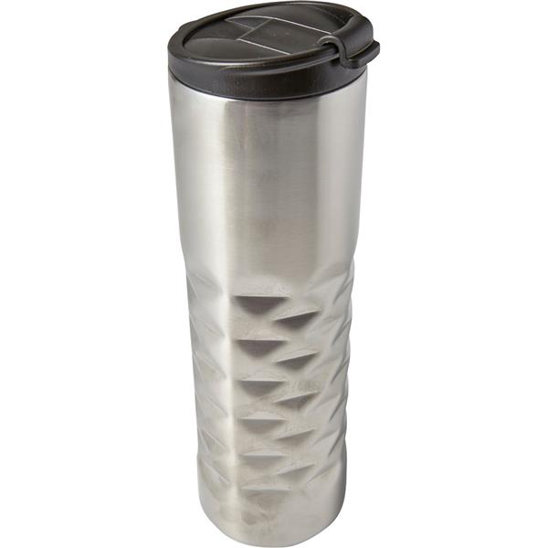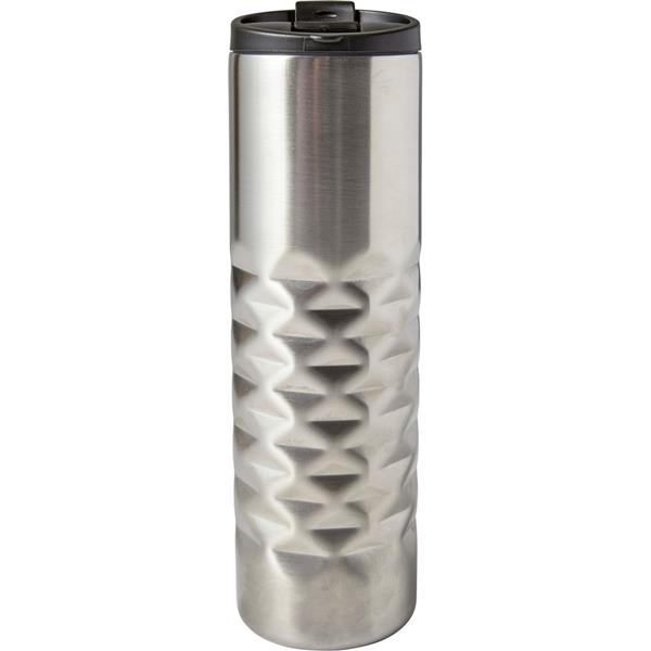 Geometryczny kubek termiczny 460 ml, podwójne ścianki, wnętrze ze stali nierdzewnej, plastikowe wieczko, klasa termiczna: C