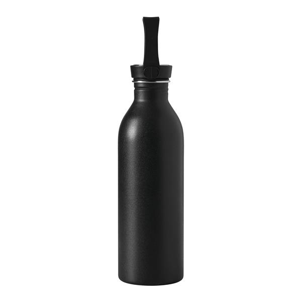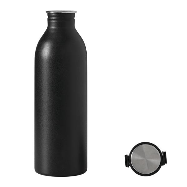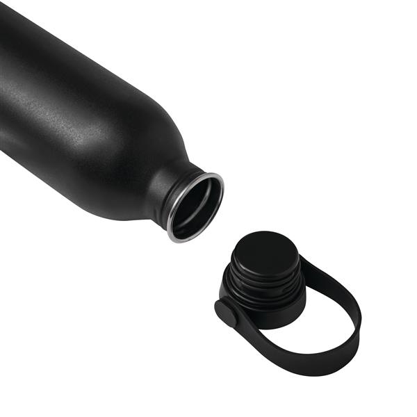 Butelka GET REFRESH, z matową powłoką proszkową. Ma plastikową pokrywę z bezpieczną zakrętką, której górna powierzchnia wykonana jest ze stali nierdzewnej. Posiada silikonowy pasek do przenoszenia. Pojemność butelki to ok. 550 ml.