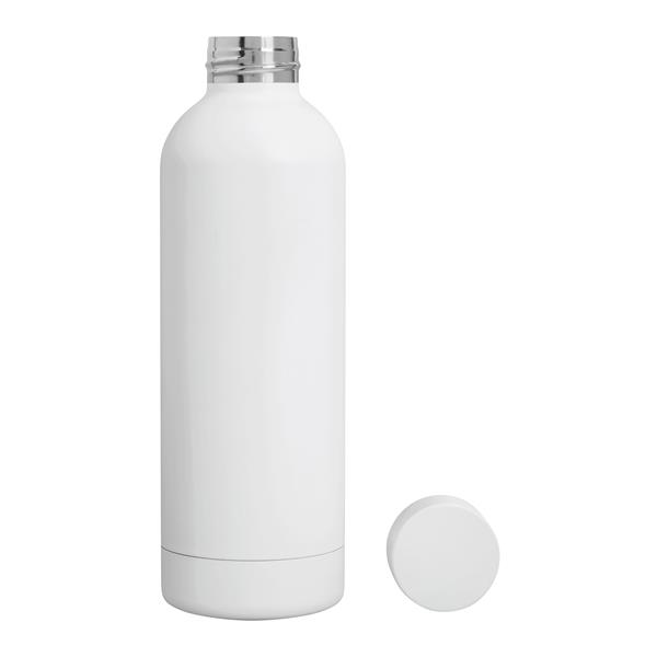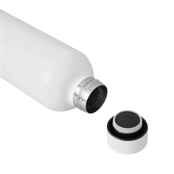 Próżniowa butelka termiczna GET WARM, z podwójną izolacją: wewnątrz i na zewnątrz wykonana jest ze stali nierdzewnej. Posiada dopasowaną kolorystycznie plastikową pokrywkę z bezpieczną zakrętką i silikonowym pierścieniem uszczelniającym. Pojemność butelki to ok. 500 ml. Utrzymuje ciepło przez ok. 8 godzin, a zimno nawet do 12.