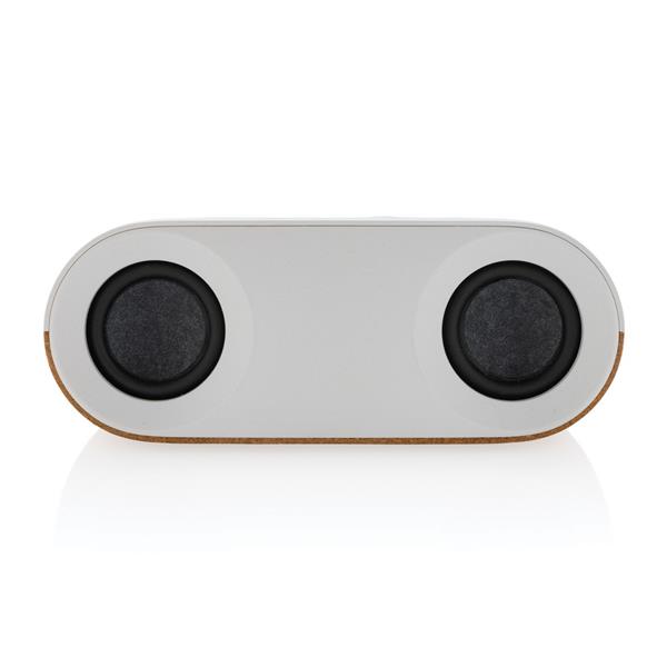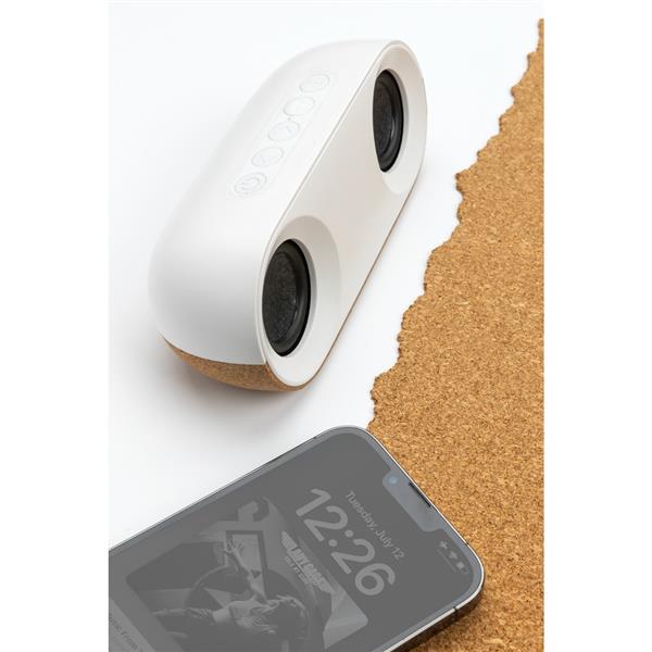 Głośnik bezprzewodowy 10W BT5.3, wbudowany mikrofon, funkcja odbierania połączeń, wbudowany akumulator o pojemności 1200 mAh pozwala na odtwarzanie muzyki do 10 godzin, zasięg do 10 m, wykonany z korka oraz ABS z recyklingu z certyfikatem RCS, całkowita zawartość materiałów z recyklingu obliczona na podstawie wagi całkowitej przedmiotu: 25%, kabel z TPE z recyklingu w komplecie, w pudełku z papieru kraftowego