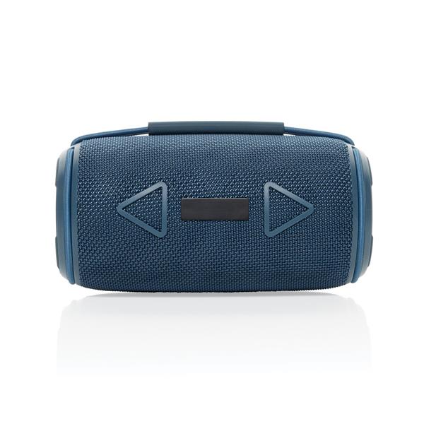 Głośnik bezprzewodowy 16W, BT 5.3, wodoodporny IPX4, wbudowany mikrofon, funkcja odbierania połączeń, posiada dwa głośniki niskotonowe, wbudowany akumulator o pojemności 1500 mAh pozwala na odtwarzanie do 7 godzin na średnim poziomie głośności, wykonany z materiałów pochodzących z recyklingu, całkowita zawartość materiałów z recyklingu obliczona na podstawie wagi całkowitej przedmiotu: 37%